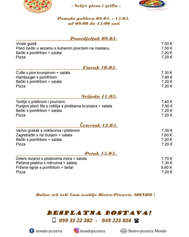 Bistro Pizzeria Mondo – 09.03.-14.03.2026.