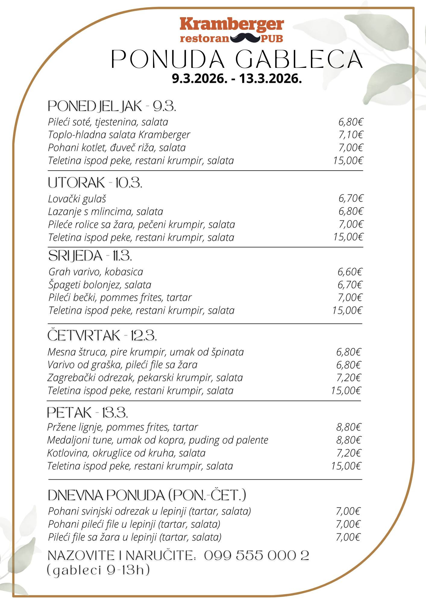 Restoran Kramberger – 09.03.-14.03.2026.